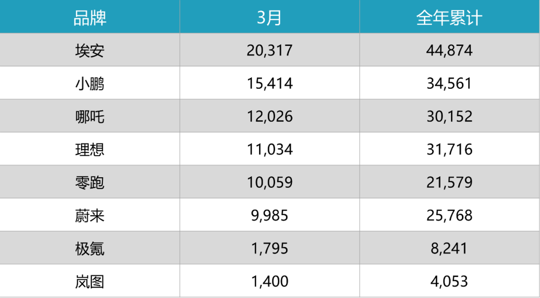 埃安3月销量力压新势力,蔚来被零跑超越