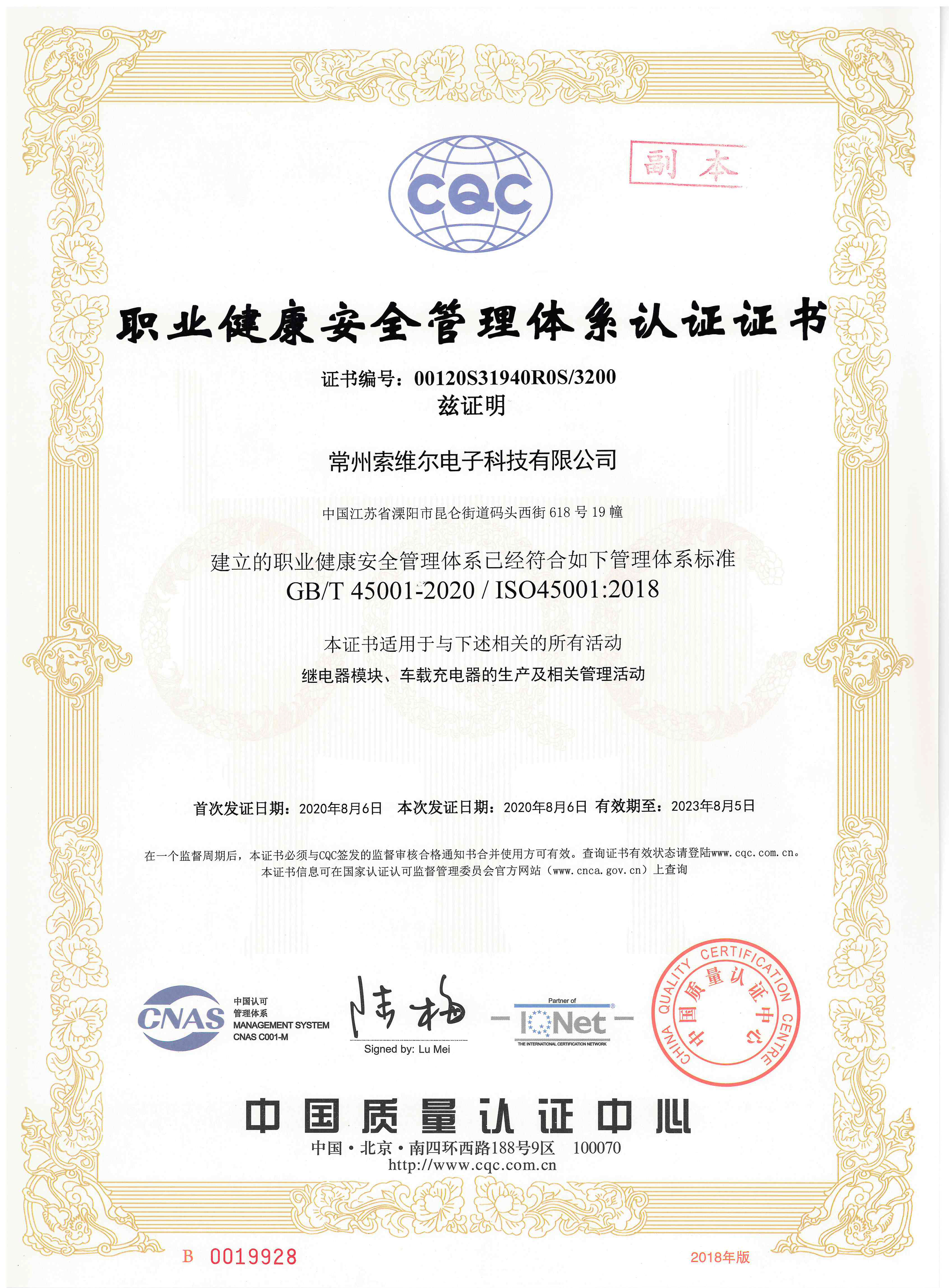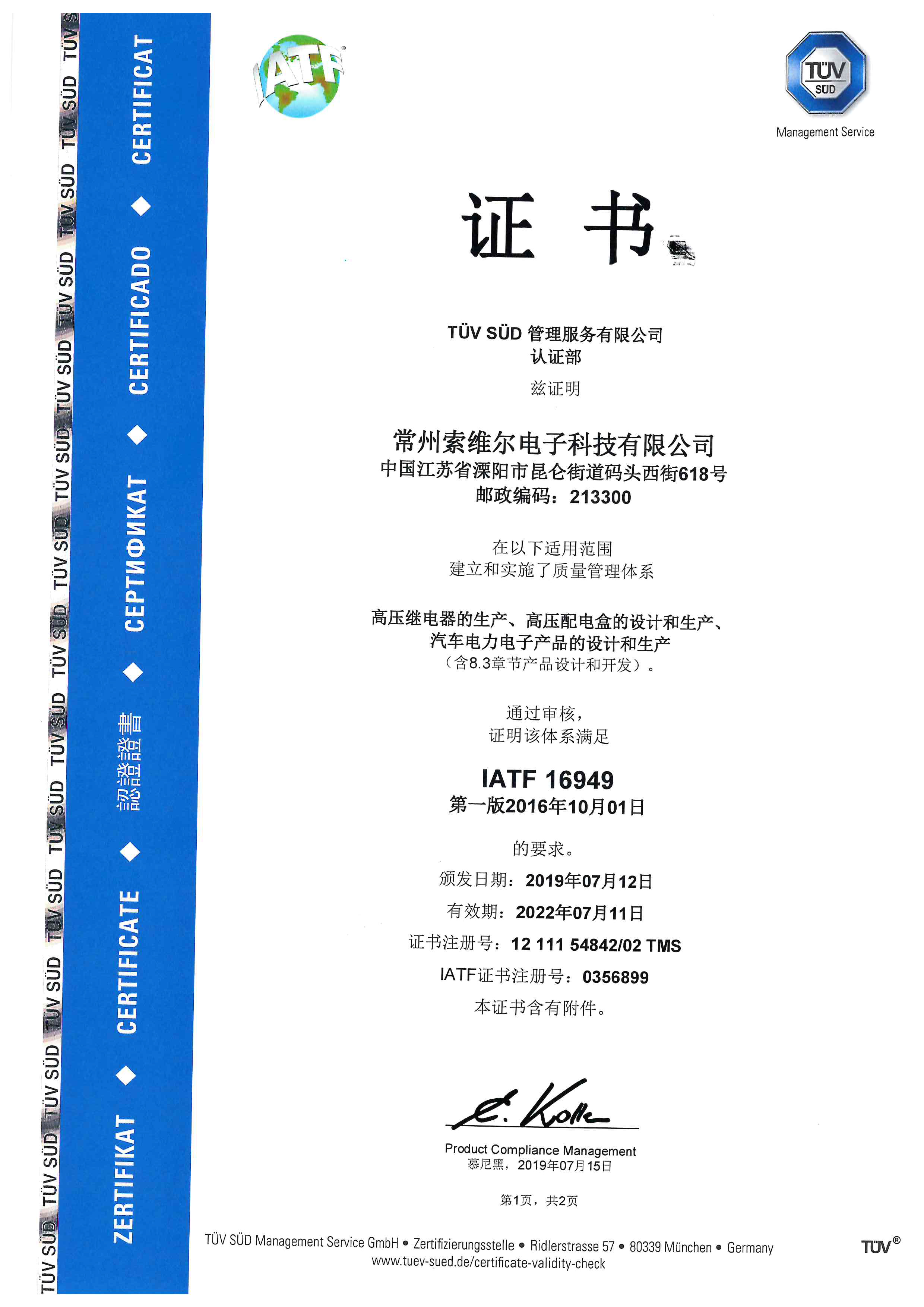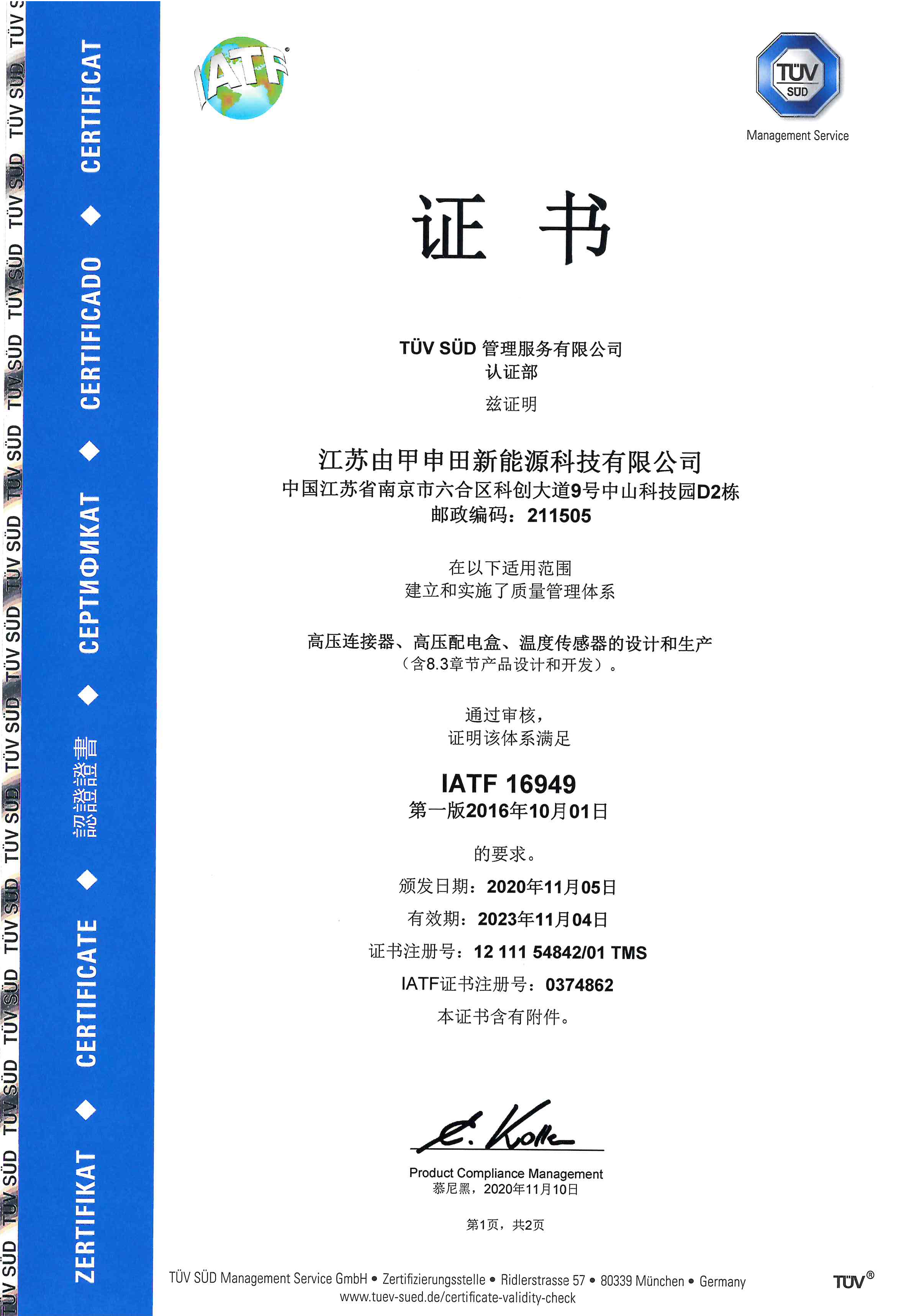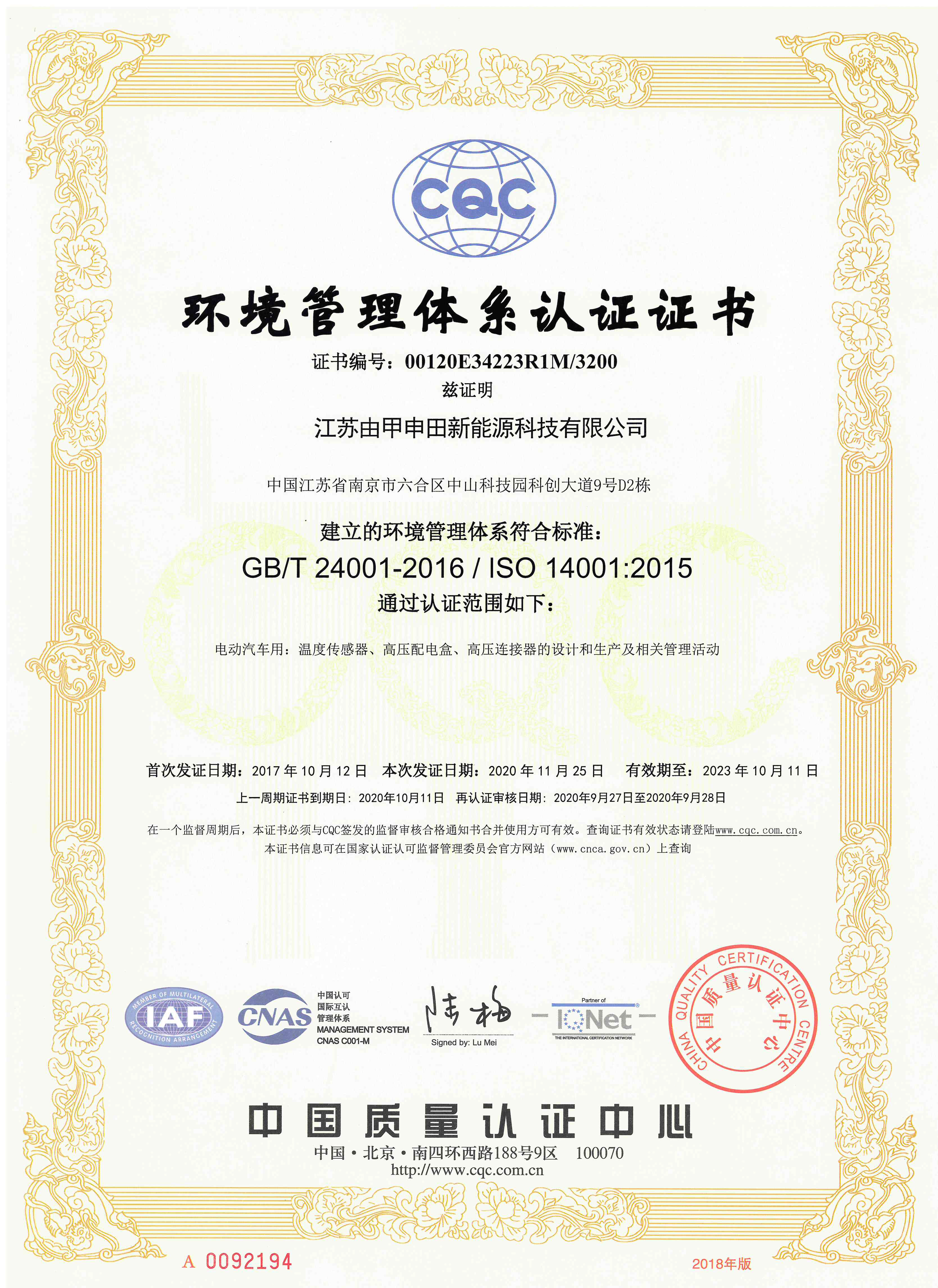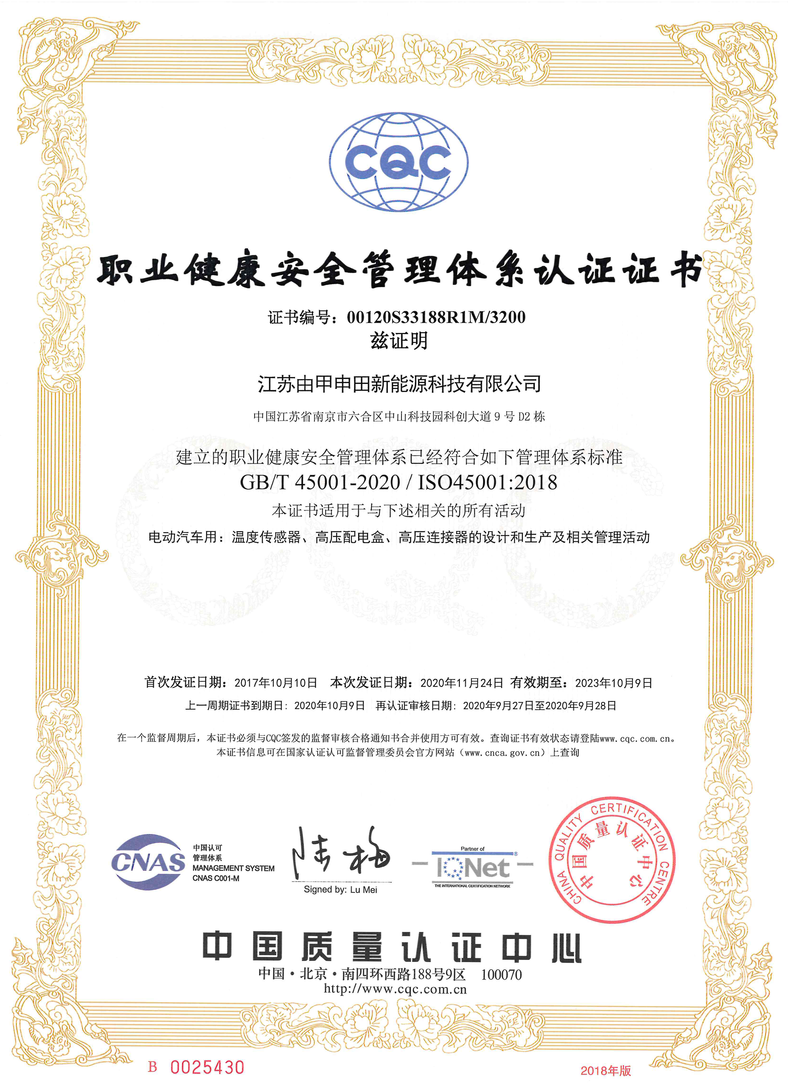 江蘇是為科技有限公司建立了完整的質量管理體系,獲得了IATF16949、ISO9001、ISO14001、ISO45001等體系認證。